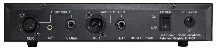 Midrange frequencies are the most critical for achieving clear voice articulation in receive audio. The Parametric Receive Audio Unit allows operators to have unique control over these important frequencies. First, operators can adjust the parametric midrange filter from 400 Hz through 4 kHz, with the recommended sweet spot being at 2.5 kHz. In addition, operators can control the presence of these midrange frequencies plus or minus 15 dB. Combined with a low-frequency filter down to 160 Hz, and a high-frequency filter up to 6 kHz, the Parametric Receive Unit provides operators unparalleled control and quality of their receive audio. The PRAS has three audio inputs: standard XLR and 1/8" inputs, and an 8 ohm input that can be used with the 8 ohm speaker output of any receiver. There are three audio outputs on the PRAS: balanced XLR and 1/4" outputs on the rear panel, and a 1/8" output on the front panel for recording audio. The PRAS also has two built-in headphone amplifiers with separate level controls and dual 1/8" headphone outputs. The PRAS is best when used with the Heil HPS-5 powered speaker (the PRAS must be used with a powered speaker). But can be used with the speaker of your choice. Requires 12VDC, comes with 6FT power adapter cable, 2.5mm barrel connector (PRAS side) to Anderson power pole connectors. |